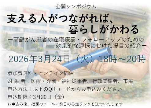 厚生労働科学研究費がん対策推進総合研究事業「支える人がつながれば、暮らしがかわる」公開シンポジウム開催のお知らせ
