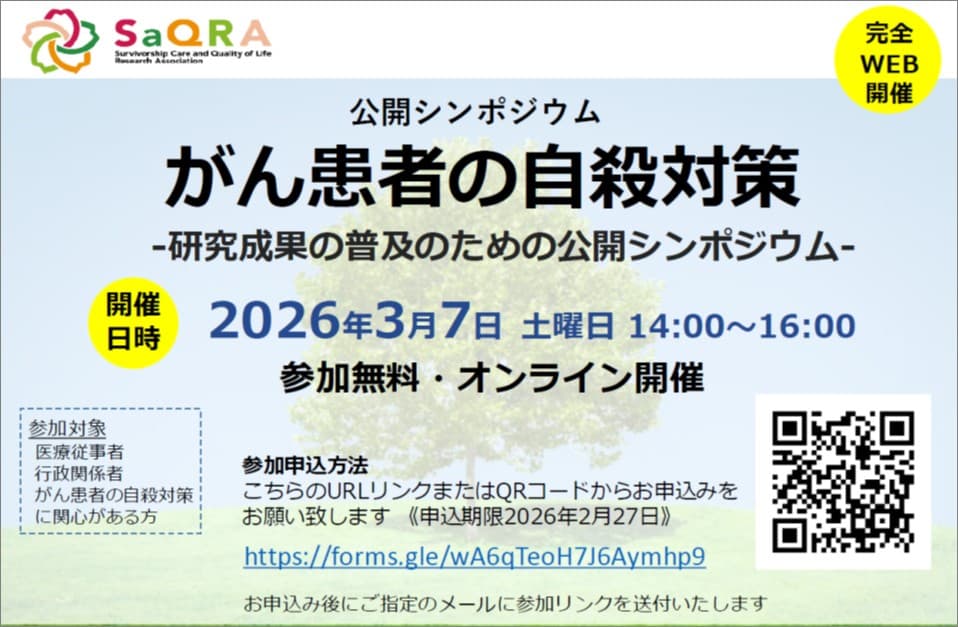 「がん患者の自殺対策」-研究成果の普及のための公開シンポジウム-開催のご案内