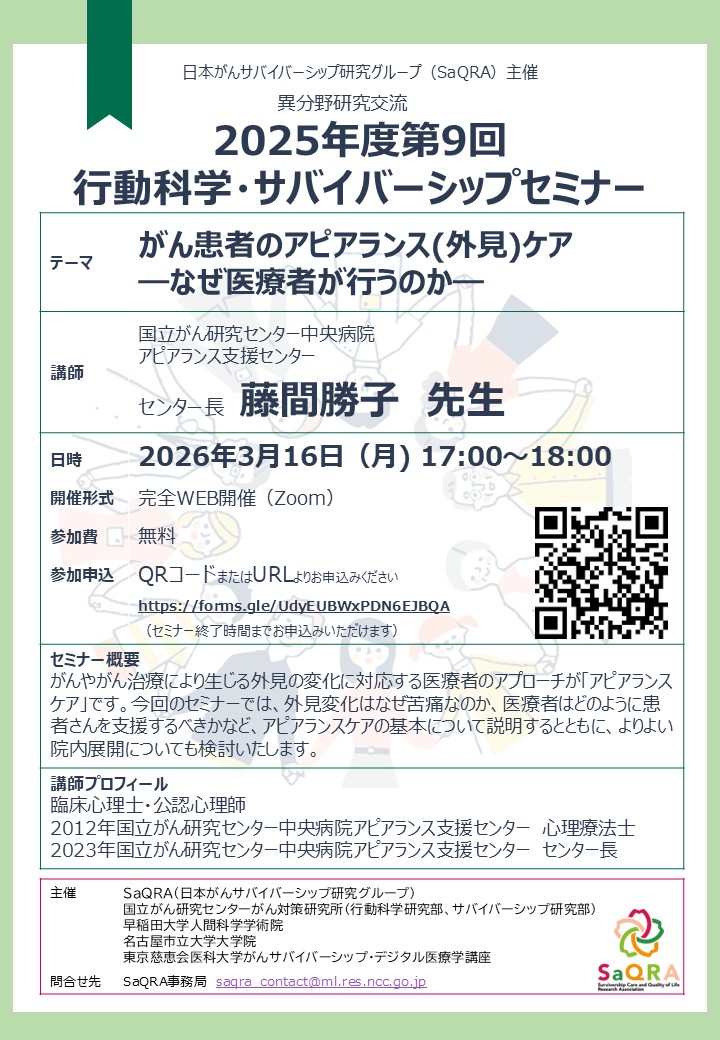 2025年度第9回行動科学・サバイバーシップセミナー開催のお知らせ
