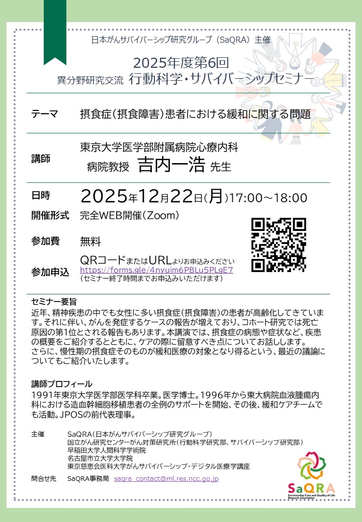 2025年度第6回行動科学・サバイバーシップセミナー開催のお知らせ