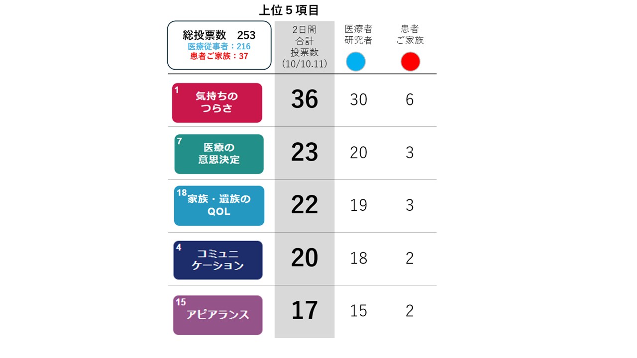 投票総数 253票(医療者・研究者による投票:216票、患者・ご家による投票:37票)